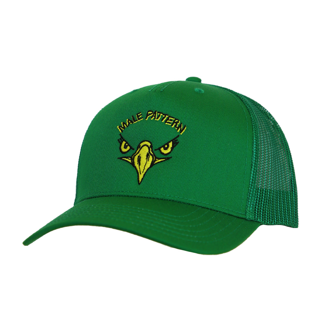 The Male Pattern Bald Eagle features a striking embroidery of a bald eagle glaring straight through your insecurities. A feathered tribute to strength, freedom, and the inevitable march of time. A patriotic nod to bald awareness because some birds just look better without feathers up top.