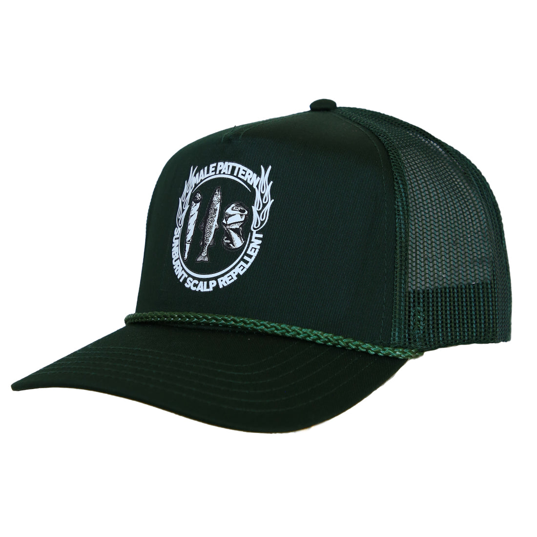 The Male Pattern Trio graphic highlights three essentials a joint, fishing, and beer because some things just go together.